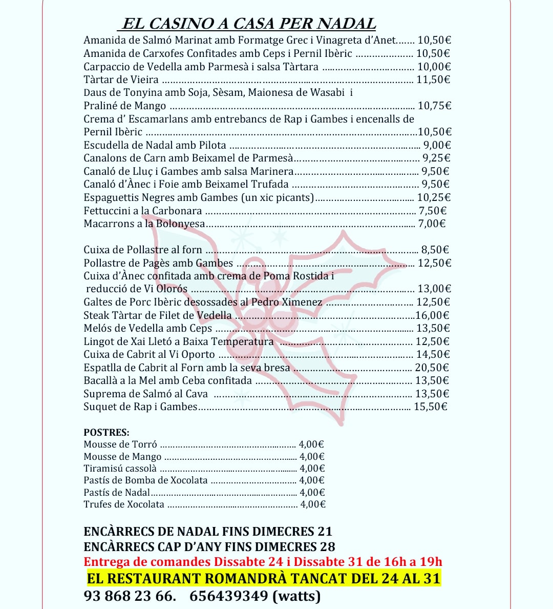 Welcome to Casino Restaurant, nestled in the charming Parc Municipal Macary i Viader in Súria, Barcelona. This unique dining spot offers a menu that artfully balances traditional flavors with contemporary twists, catering to a diverse array of dietary preferences, including delightful vegetarian options.